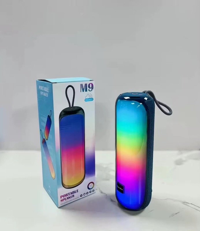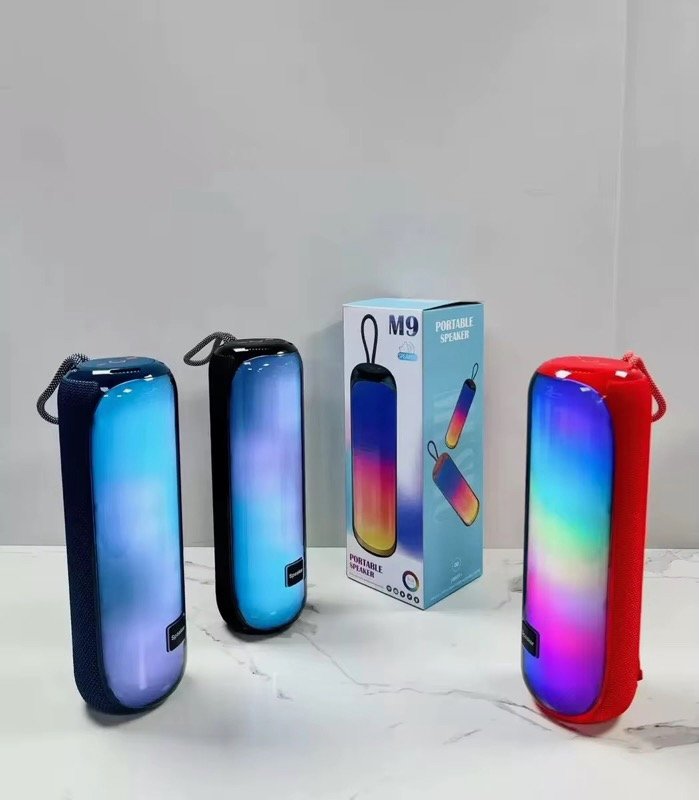 RGB lighting ke sath portable wireless speaker—outdoor parties, travel aur home use ke liye perfect.
