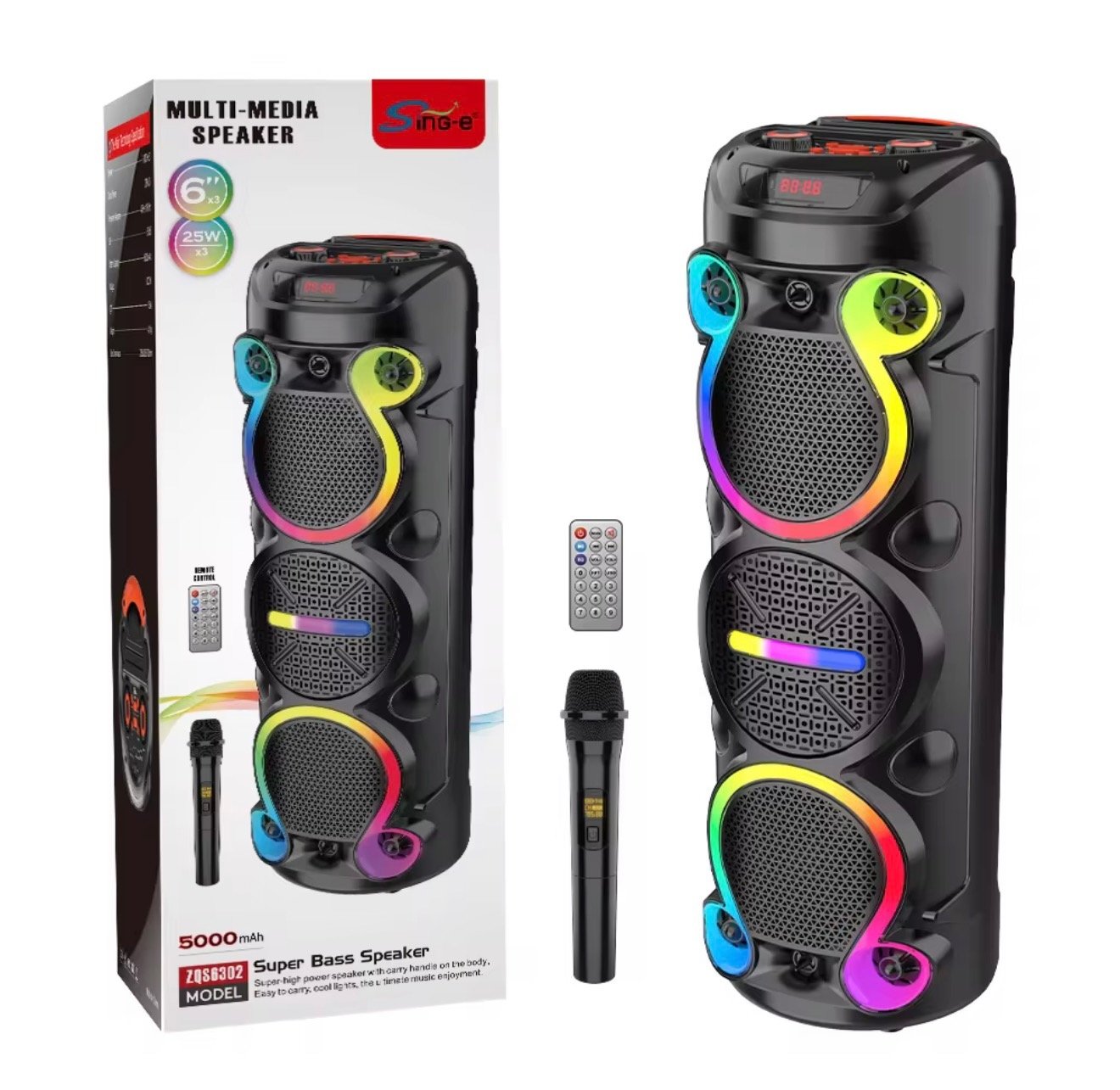 The speaker supports Bluetooth connectivity, allowing you to easily play music from your smartphone, tablet, or other devices. It also comes with a wireless microphone and remote control, making it perfect for karaoke, parties, and gatherings. With its rechargeable battery and portable design, you can take the music anywhere and enjoy nonstop entertainment.