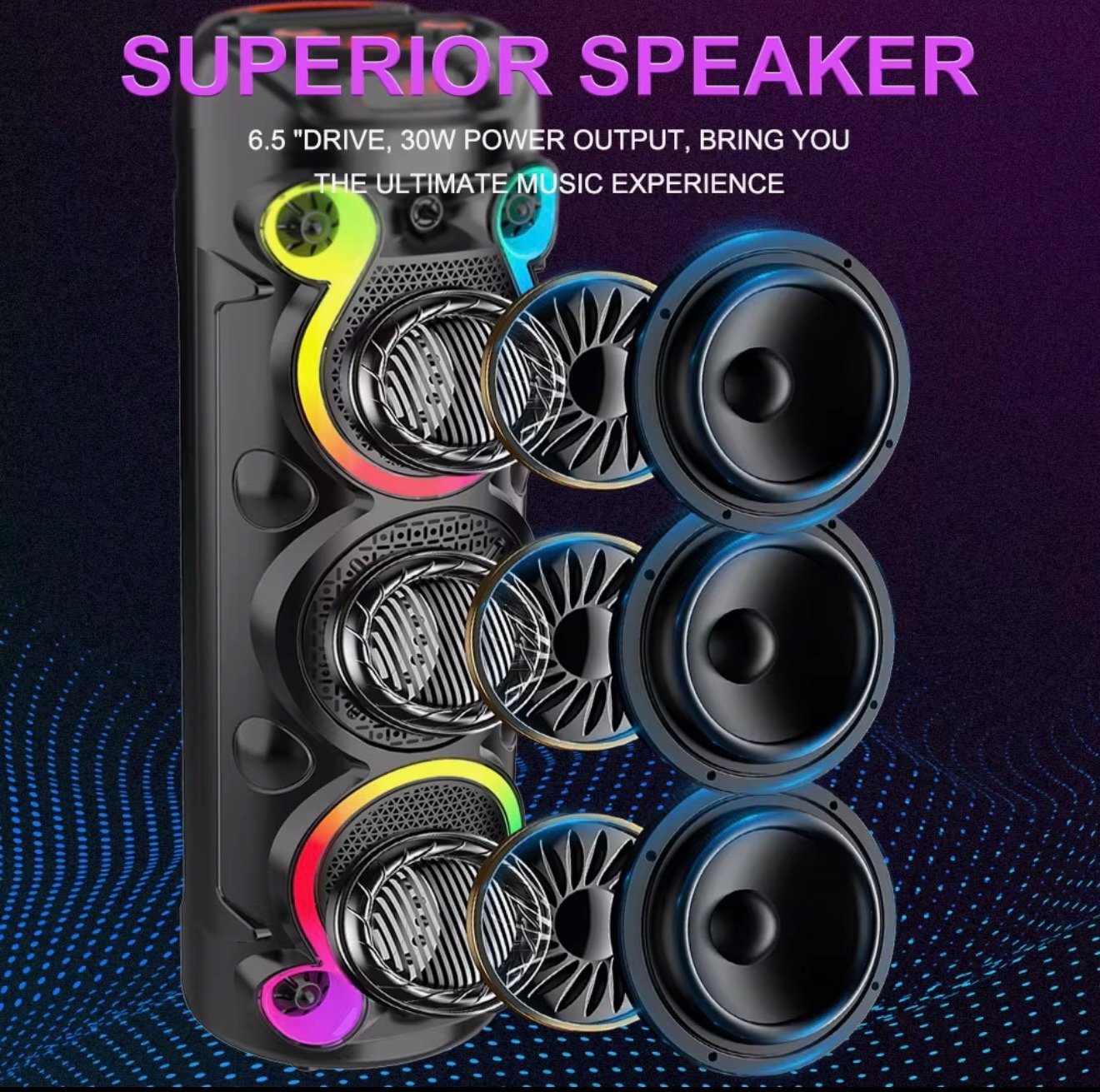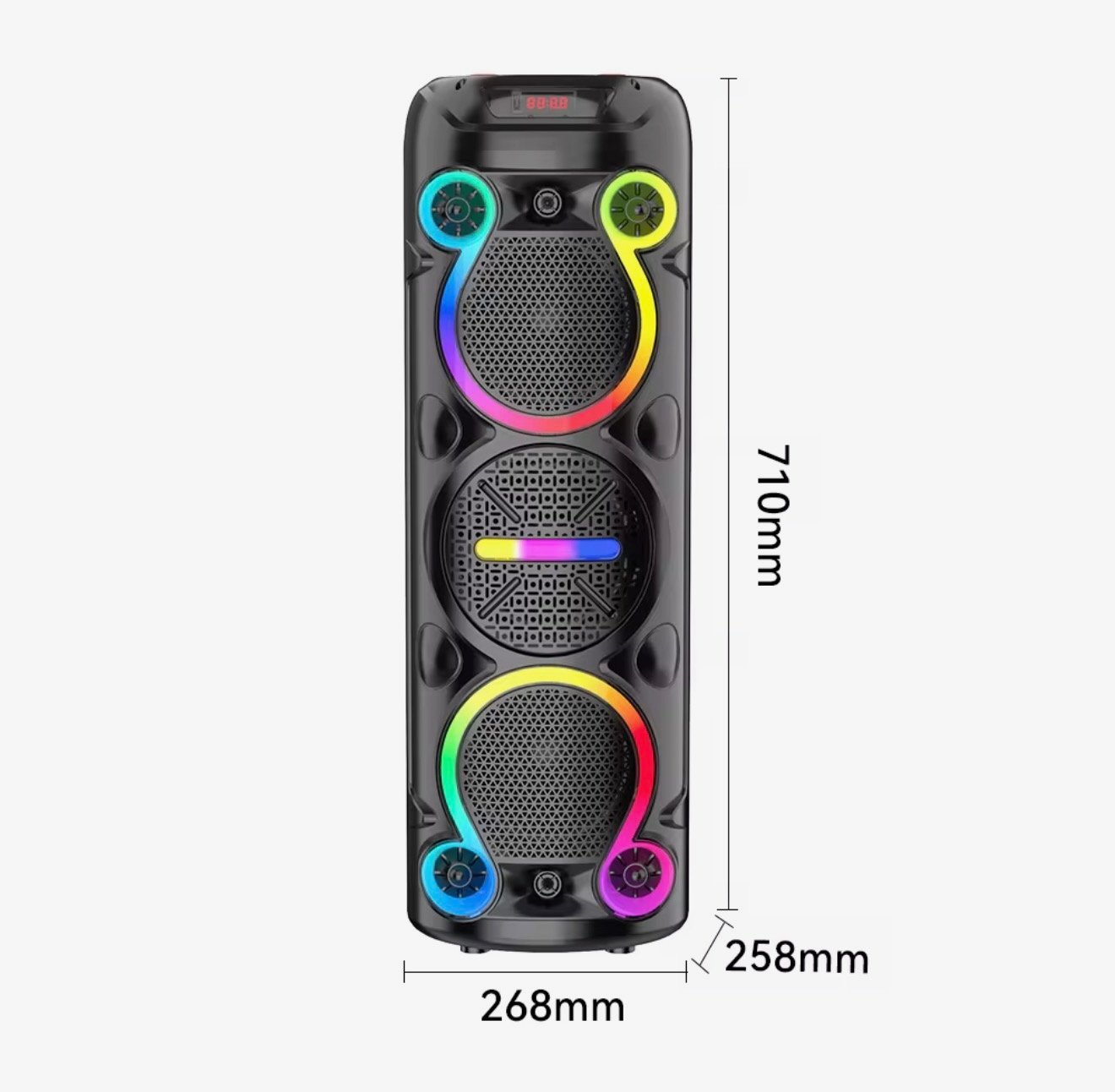Enjoy powerful sound and colorful lighting with the RGB LED Multimedia Bluetooth Party Speaker. Designed for parties and entertainment, it delivers clear audio with strong bass and vibrant RGB LED lights that create an exciting atmosphere.